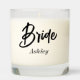 Bride Black White Script Wedding Candle. Check out our store collection below for matching items.