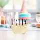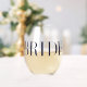 This stemless wineglass is the perfect gift for any bride-to-be. It is made of high-quality glass and has a beautiful design with the word "Bride" printed in an elegant font. It is a versatile glass that can be used for wine, cocktails or any other beverage of your choice. The stemless design makes it easy to hold and reduces the risk of spills. It is also dishwasher safe for easy cleaning. This wineglass will make a wonderful addition to any bridal shower or bachelorette party, or even as a special keepsake for the bride to remember her special day.