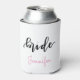 Bride can cooler with black and pink calligraphy lettering. Personalize the name to customize. Modern lettering designed by Joy by Jess.