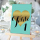 Bride & Co Gold Heart Teal Blue Shower Party Table Number