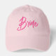 This cute hat features hot pink text that reads: Bride. Click "Personalize this template" to easily change the text color, or to change or remove any of the text. You can add text so that it reads: Sister of the Bride, or change the text from sister to mother, friend, cousin, niece or any text you choose. This cute hat is available in a wide variety of colors and styles, and is ideal for bachelorette parties, getaways or just because.