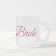 Celebrate the bride with this elegant frosted glass mug featuring the word “Bride” printed on both sides, making it perfect for right- or left-handed use.