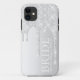 This beautiful silver foil phone case with dripping glitter from the top that says "BRIDE" in a modern CAPS font and has your future married name and wedding date in a script font is perfect for you while planning your wedding. It will look awesome on your phone. A bridal must have!