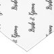 Bride and Groom is written in a repeated diagonal pattern in black script against white background. Elegant couple's reception table typography. Original Design by TamiraZDesigns.