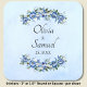Bride & Groom Names & Date Blue Peony Square Sticker
