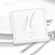A white, clear and clean wedding napkin, personalized with the bride and groom names, a big script font family initial, and special day... for a nice wedding party