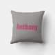 Fun reversible bride's name and groom's name throw pillow in pink and grey. Get two of them and have the set as decoration at your wedding or reception. Cute and whimsical wedding decor.