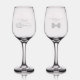 This beautiful etched glassware set is designed as a gift for the bride and groom. It features a lovely and elegant design with fancy script lettering reading "The Bride" on her glass and "The Groom" on his. Her glass features a beautiful long stemmed rose lying on its side, while his has a classy bow tie. Wonderful way to celebrate the new couple at an engagement party, rehearsal dinner, wedding reception, or as a wedding gift.