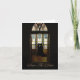 One of the most beautiful ways to ask friends, family and loved ones to save a date for your most important event is with this card image viewing a bride and groom kissing in front of stained glass windows through the church doors.