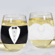 Bride & Groom Tuxedo Wedding Dress Mr. & Mrs Stemless Wine Glass