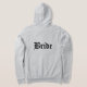 This women's Bella soft zip hoodie for the bride to relax in is shown in heather grey and has black color Bride text on the front and back.
