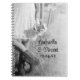 Customize the rustic chic Bride in Cowboy Boots and Sunflowers Country Western Wedding Spiral Notebook with the personal names of the bride and groom and specific marriage ceremony date to create a unique advice book or guest book. This charming custom rural ranch theme nuptial note book features a quaint black and white farm style photograph of a cowgirl bride wearing a white wedding dress and leather cowboy boots carrying a bouquet of sunflower blossoms with a weathered wooden barbed wire fence, barn and silo in the background. Perfect inspo for a casual barn party celebration event.