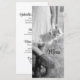 The informal yet elegant Bride in Cowboy Boots with Sunflowers Ranch Wedding Menu can be customized with the details of the meal that you will serve at your country western bridal shower luncheon, rehearsal dinner or barn party marriage reception dinner. This charming custom rustic chic nuptial menu features a quaint black and white farm style photograph of a cowgirl bride wearing a white lace wedding dress with leather cowboy boots carrying a bouquet of sunflower blossoms with a weathered wooden barbed wire fence in the background.