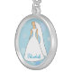 Bride in Gown Blue Polka Dot Personalized Necklace