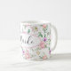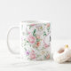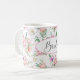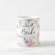 Bride coffee mug is shown in a pretty rose floral print, Bride text.