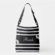 Bride on black and white striped Tote Bag. Text is customizable! Simple design matches with casual and elegant clothes. Fashion beautiful women Tote Bags. Classic striped shopping bags.