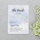 An elegant "The bride is on Cloud 9" bridal shower invitation featuring a blue pastel and watercolor background and ample calligraphy swirls. The title and the swirls are covered in gold foil.