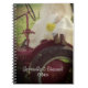 Customize the charming Bride on Red Tractor Country Farm Wedding Spiral Notebook with the personal names of the bride and groom and their marriage ceremony date to create a casual yet classy advice book, guest book or planner. This rustic chic custom western ranch theme nuptial note book features a quaint digitally enhanced farm style photograph of a bride wearing an ivory white satin wedding dress, bridal veil and brown leather cowboy boots carrying a bouquet of yellow daisies sitting on an old red tractor. Perfect inspo for the cowgirl bride planning an informal barn party ceremony and reception event.