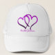 A fun hat that you can customize to make it for anyone in your wedding party. It features intertwined purple hearts with custom text on the bottom. Perfect for the bride, groom, groomsmen, bridesmaids, fathers, or anyone else!