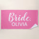 Bride Pink And White Newlywed Bride Beach Towel. Modern script wifey beach towel. Perfect honeymoon towel for the bride. Personalize this custom design with your own name or text.