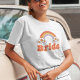 Rock your bachelorette party with this vibrant, fun t-shirt, featuring retro rainbow, daisy flowers & trendy bride typography.