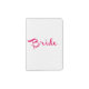 Fully customizable bride script in pink with a black diamond to dot the "i." Cute way for the bride to let the world know the news. Perfect for bachelorette parties and other wedding events.