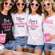 Make a statement at the bachelorette party with this fun and cheeky “Bride’s Bad Influence” bridal party shirt. Perfect for the crew that keeps the celebration going, this design blends bold lettering with a stylish script font and a personalized name for that extra custom flair. Whether you’re hitting the town or capturing unforgettable group photos, this tee adds personality and attitude to the entire bridal squad. Comfortable, flattering, and easy to style, it’s the perfect choice for bridesmaids and party guests ready to celebrate in style.