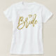Bride shirt, perfect for Bridal shower or Bachelorette party, is white shirt with faux gold handwritten text and diamond graphics