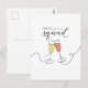 Celebrate your bridal crew with this elegant personalized "Bride Squad" postcard, featuring a stylish line art illustration of two clinking champagne glasses—one filled with bubbly yellow, the other with sparkling pink. The modern script and playful design make it perfect for bachelorette parties, bridal showers, or as a heartfelt thank you to your bridesmaids. Cheers to friendship, fun, and unforgettable memories!