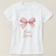 This design features a soft and elegant aesthetic. At the top, there's a delicate, watercolor-style bow in a muted blush pink. Below the bow, the phrase "Bride Squad" is written in a graceful, flowing script font, colored in a slightly darker shade of pink that complements the bow. The overall look is clean, charming, and stylish, making it a great accessory for a bridal party. It would be perfect for the bridesmaids'.