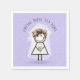Cute stick girl wearing sneakers, lace bridal dress, veil, and holding a daisy bouquet on polka dot pattern for bridal shower.