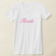 I purchased this shirt and a matching men's one for my grandaughter and her fiance. They were both thrilled and wore them immediately. The quality of the shirts was good and the design was bold and easily seen. I would recommend these shirts to newly engaged couples. The design was colorful, bold, and easily read