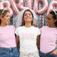This modern and personalized Bride T-Shirt is the perfect outfit for any bride-to-be! Featuring soft blush pink “BRIDE” text paired with elegant handwritten “future Mrs. [Your Name]” below, this tee is ideal for bridal showers, bachelorette parties, wedding prep, and honeymoon travel. Available in multiple styles and fits for every bride’s comfort and look.