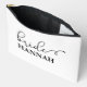 "This Bride / Team Bride accessory and makeup bag showcases a sleek black script font with elegant swashes on a clean white background. It's the perfect gift for your bride, designed to hold makeup and small essentials. Traditionally presented at the rehearsal dinner, this toiletry bag will come in handy during those early hours before the wedding."