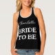 This personalized bride to be's tank top features trendy bold white text on both sides. A quality black top that stands out from the crowd. A great tee for your bachelorette party. To change or delete the text click on the personalize button.