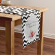 Celebrate the Bride-to-be with this beautiful personalized black and white chevron table runner featuring a beautiful watercolor floral and a gray accent frame for the bride-to-be's name or other text. All text can be customized.