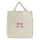 This is a great quality canvas bag. Looks sturdy and I'm sure I will get a lot of use out of it. One thing to note: the "natural" color tote pictured here looks more on the white side but when you actually get the product it looks more like a khaki color. I feel a little grandma-ish using this because it's a "mature" look. Otherwise this is a great bag and I can see brides giving this to her maids for weddings. Monogramming turned out a lot better than expected. The stitch work is really clean (I've seen some really bad embroidery before). Pictured here the embroidery looks like a neutral color - tan, maybe even brown. What you actually get is almost a Christmas green and maroon. I don't mind it. It looks fine and it's very much similar to the simulated stitch video they offer. I just thought when you get the actual product it wouldn't look so apparently colorful.. Still very nice, though. Wish I had the option to pick the stick color.