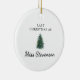 Lightweight, smooth, pure white ornament with nice sheen. Perfect size to be seen from across the room ... and to attract closer inspection! Price was great for ordering enough for the whole family! Clear, bold black design just as requested. Matches the order exactly. Just so nice!