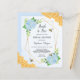 These bridal shower invitations feature a watercolor floral design with blue hydrangea flowers, leaves, honey bees, honeycomb and a faux gold geometric frame. Matching products also available.