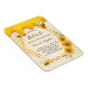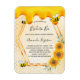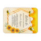 Elegant, fun, rustic summer magnet bridal shower invitation. A yellow background with a honeycomb pattern. With a faux gold geometric frame and sweet honey dripping. Decorated with yellow and orange sunflowers and happy bumble bees. With the text: Bride to Bee and the name of the bride on front written with a modern hand lettered style script. Black letters.