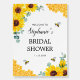 This watercolor bridal shower welcome sign features watercolor sunflowers, eucalyptus foliage, bees and honeycomb. Personalize it with the bride's name and bridal shower date. Matching bridal shower party products also available.