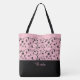 This lovely fashion forward tote bag shows the word "Bride" in a Pink text color over Black with the upper tote bag in Pink with Black vines and scrolls all over. Has plenty of room for personalized text. Graphics and text are on both sides of this tote bag. Black handle. Customize further or buy as shown.