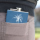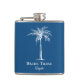 This fun tropical palm tree custom flask with the words "Bride Tribe" in white on the (color of the year 2020) blue background is the perfect bridal shower gift for a tropical beach destination or outdoor wedding! Personalize it with your bridesmaid's name.