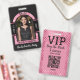 Celebrate the bride in VIP style with this fun and interactive “Buy the Bride a Drink” QR code badge—the ultimate bachelorette party accessory. Designed like a backstage pass, this badge features a bold black and pink glitter-inspired layout with a customizable photo, name, and scannable QR code for drink contributions.