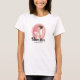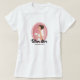 Announce your upcoming nuptials with this whimsical t-shirt design. Text says: Future Mrs with your name underneath. An illustration of a smiling bride holding a bouquet of flowers in her fancy white wedding dress and wearing a veil. Set inside a pink oval frame with a scalloped border.