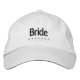 Custom Bride embroidered hat for newlyweds with black and silver text on white, to be worn at bachelorette party, wedding rehearsal, engagement party, bridal shower or less formal wedding after party.