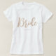 Celebrate the Bride in style with this chic personalized t-shirt! Featuring the word "Bride" in a stylish script font, this template can be customized with a name, wedding date, location, or any text you choose. Perfect for bachelorette parties, bridal showers, or a fun wedding weekend — it’s a thoughtful and fashionable keepsake your bride love! Printed colors: natural beige on white.