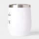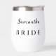 This insulated wine tumbler is shown in white with a bride custom name sample.