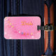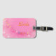 Pink and colorful stars and sparkle effect on a wedding luggage tag. Reads: Bride