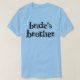 Cool black text design Bride's Brother T-shirts, mugs, mousepads, buttons, tote bags, and other brother of the bride gear that can be customized with text or a name. We have matching black text T-shirts and other items for all the members of the wedding party and family members!